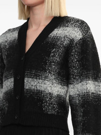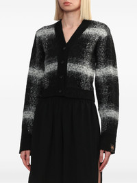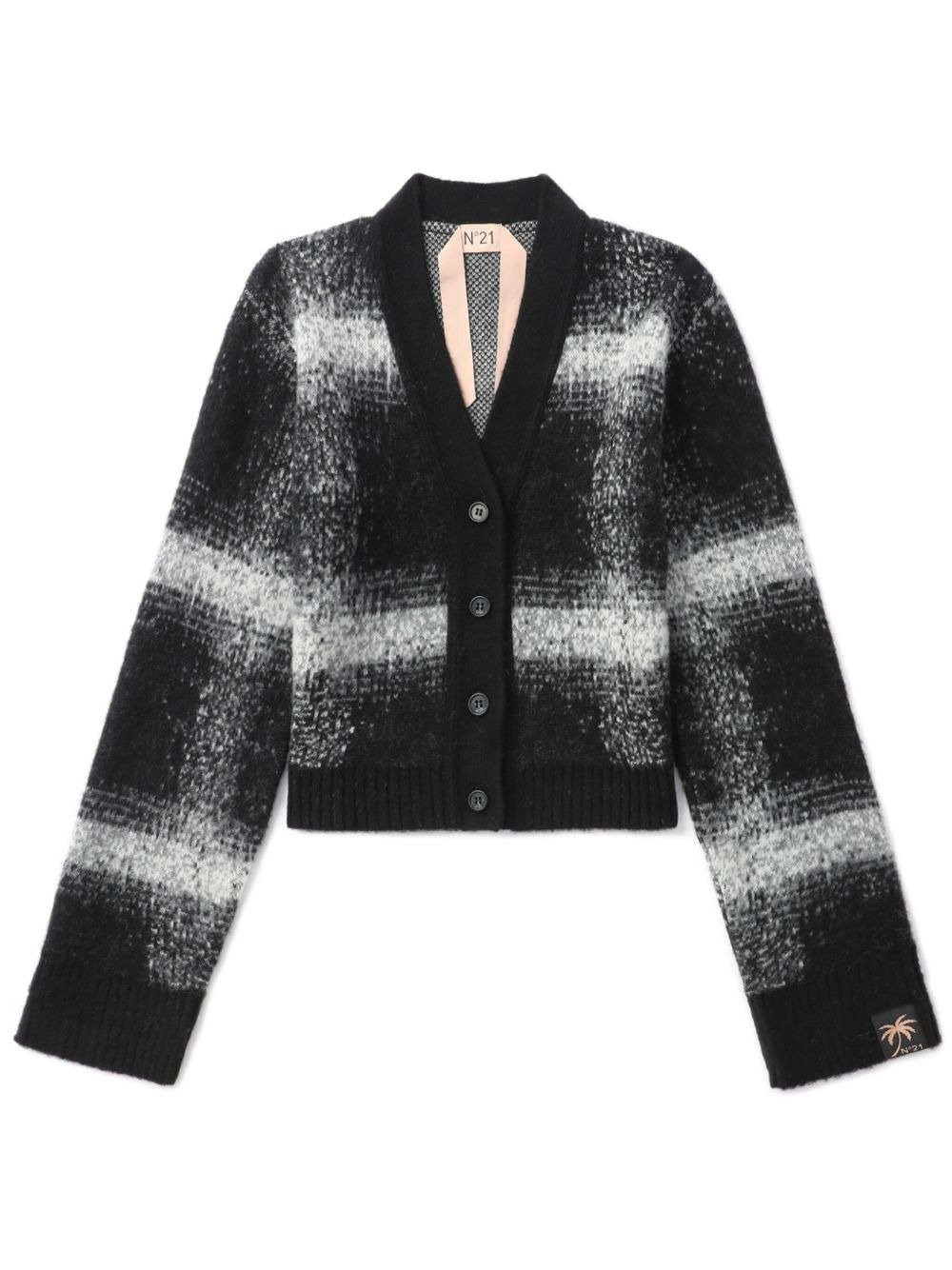 checked cropped cardigan Highlights - Black/white - Virgin wool blend - Brushed effect - Checked intarsia knit - Cropped - Front button fastening - V-neck - Drop shoulder - Long sleeves - Applique logo - Ribbed cuffs and hem Imported Composition Virgin Wool 100%