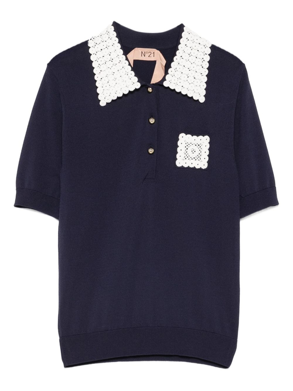 crochet-trimmed polo shirt