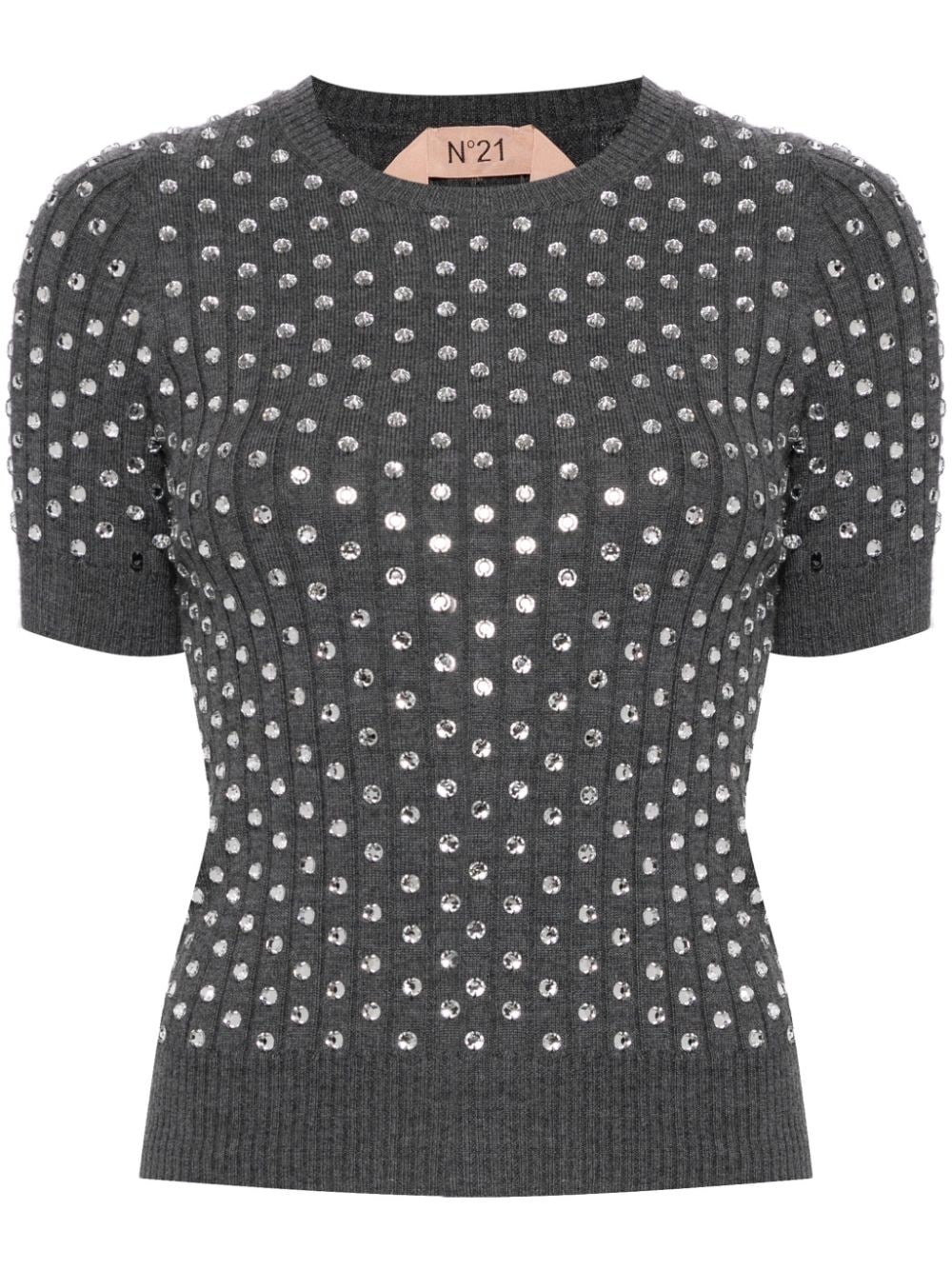 crystal-embellished wool sweater Highlights - Light grey - Wool - Knitted construction - Crystal embellishment - Crew neck - Short sleeves - Ribbed cuffs and hem Imported Composition Wool 100% Trims: Acrylic 100% SIZE & FIT Model measurements Height 5 ft 10 in(1.77 m) Bust/Chest 27.95 in(71 cm) Hips 34.64 in(88 cm) Waist 22.83 in(58 cm) FittingInformation Designed for a close fit throughout Made with a midweight knit, this piece offers some stretch