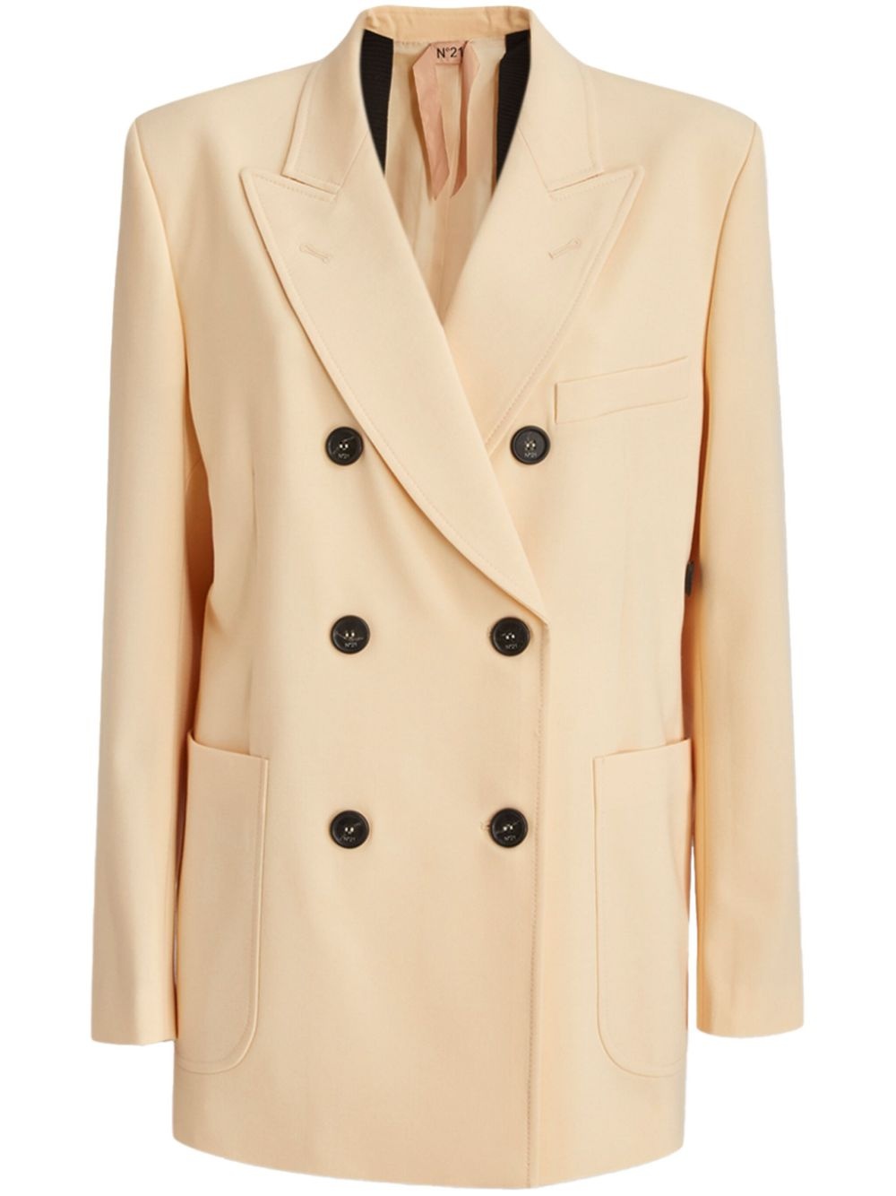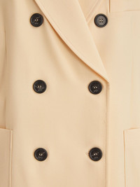 double-breasted blazer Highlights - Beige - Double-breasted button fastening - Peak lapels - Long sleeves - Slit pocket at the chest - Two front patch pockets - Straight hem Imported Composition Polyester 53%, Wool 43%, Spandex/Elastane 4%