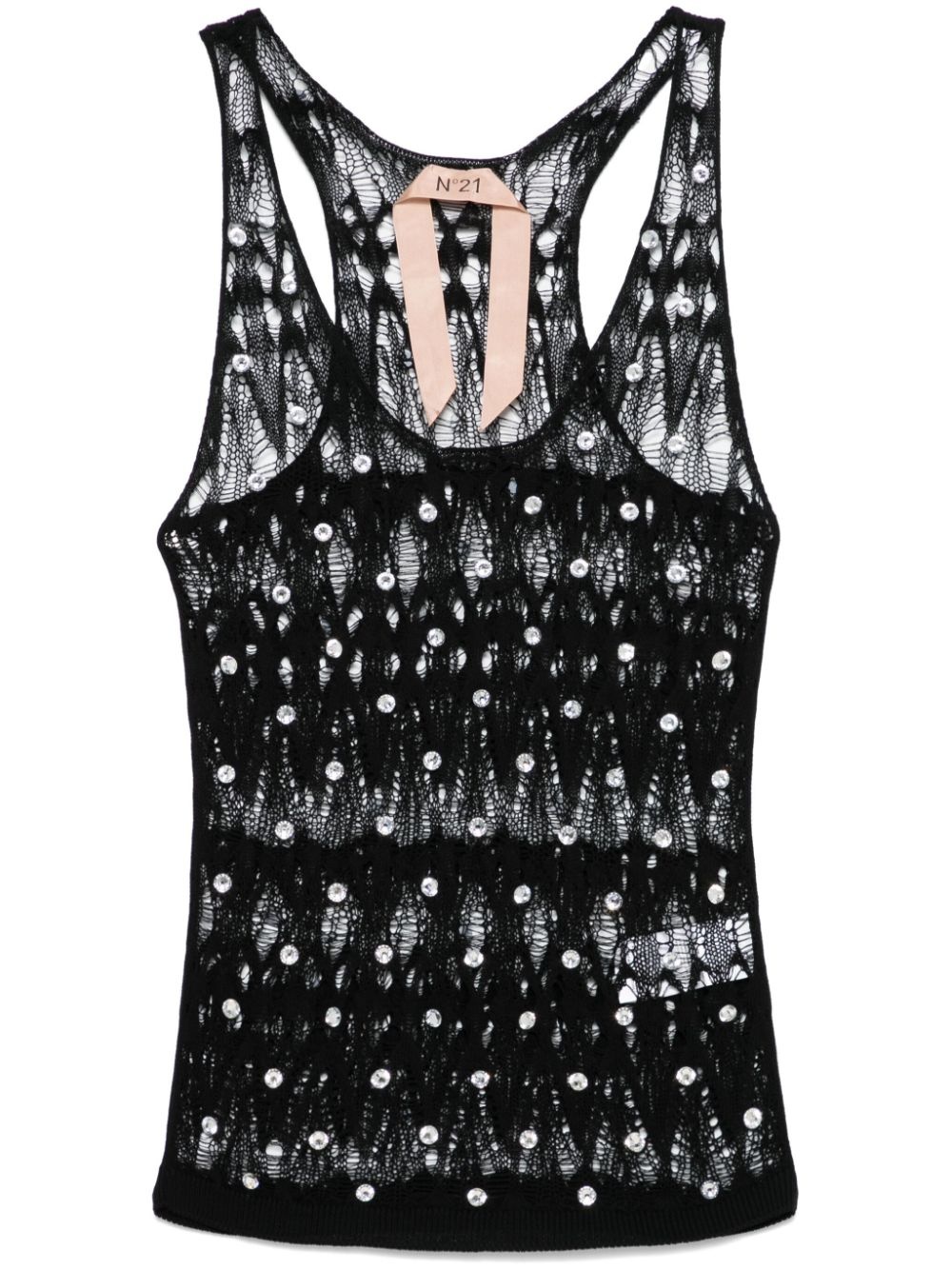 drop stitch-knit top Highlights - Black - Cotton - Drop-stitch knit - Semi-sheer construction - Crystal embellishment - Scoop neck - Sleeveless - Racerback - Ribbed hem Made in Italy Composition glass 100%, Cotton 100% SIZE & FIT Model measurements Height 5 ft 9 in(1.75 m) Bust/Chest 31.88 in(81 cm) Hips 34.64 in(88 cm) Waist 24.01 in(61 cm) FittingInformation Designed for a slim fit that sits just away from the body offering a close yet comfortable fit Made with a midweight knit, this piece offers some stretch Washing instructions Hand Wash