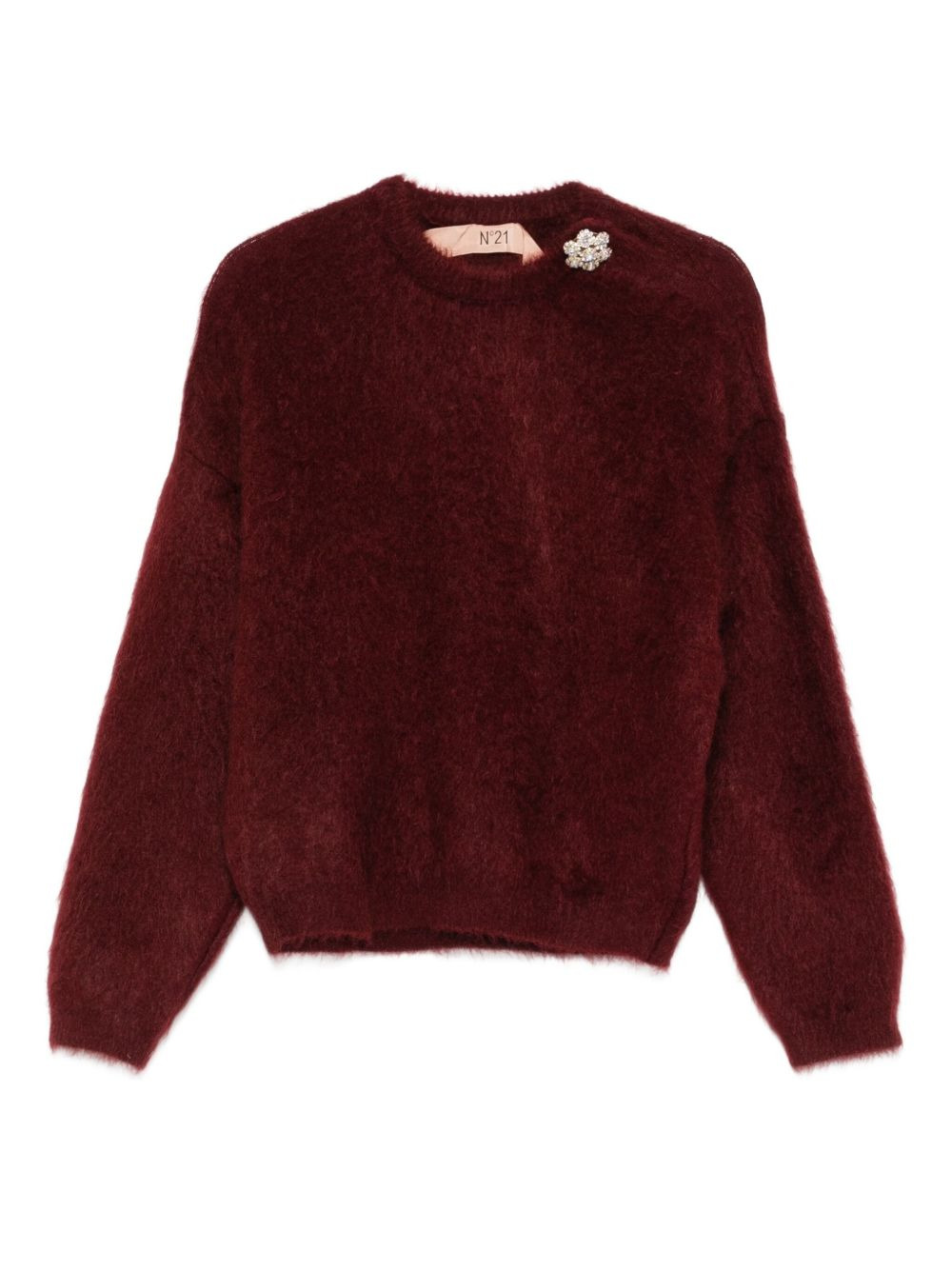 embellished sweater Highlights - Dark red - Jewel embellishment - Round neck - Long sleeves Made in Italy Composition Mohair 52%, Polyamide 44%, Wool 4% SIZE & FIT Model measurements Height 5 ft 9 in(1.75 m) Bust/Chest 34.64 in(88 cm) Hips 36.61 in(93 cm) Waist 26.37 in(67 cm) Washing instructions Hand Wash