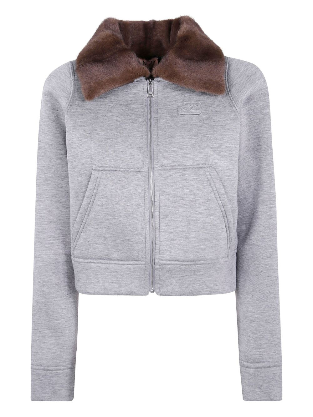 fur collar zip jacket Highlights - Medium grey - Fur collar - Zip fastening - Front pouch pockets - Long sleeves - Tonal logo patch Imported Composition Viscose 100% Washing instructions Read Manufacturer Guidelines