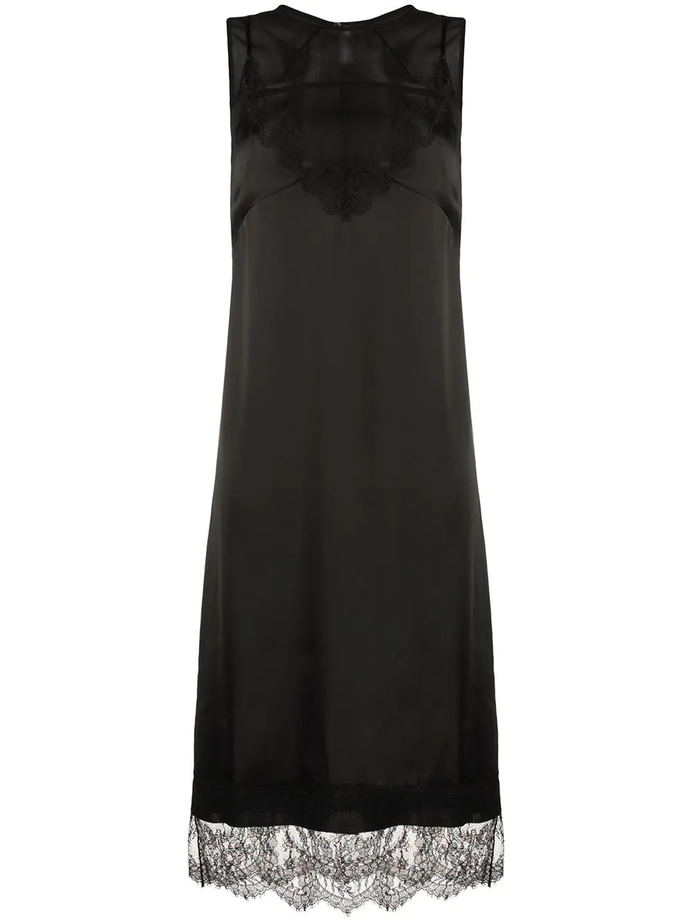 lace-trim sleeveless dress Every woman's wardrobe needs a little black dress. This version from Nº21 boasts lace panels and a shift silhouette. Cocktail evening is sorted. Featuring a round neck, a sleeveless design and a concealed rear zip fastening. Made in Italy Composition Viscose 100%