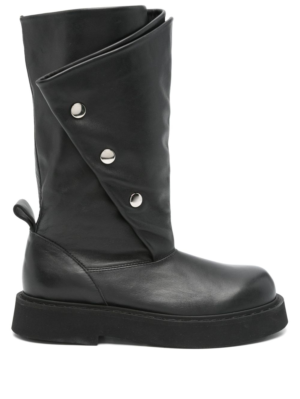leather boots Highlights - Black - Side press-stud fastening - Pull-tab at the heel - Round toe Made in Italy Composition Outer: Calf Leather 100% Lining: Calf Leather 100% Sole: Rubber 100% SIZE & FIT Measurement HEEL 1.18 in(3 cm)