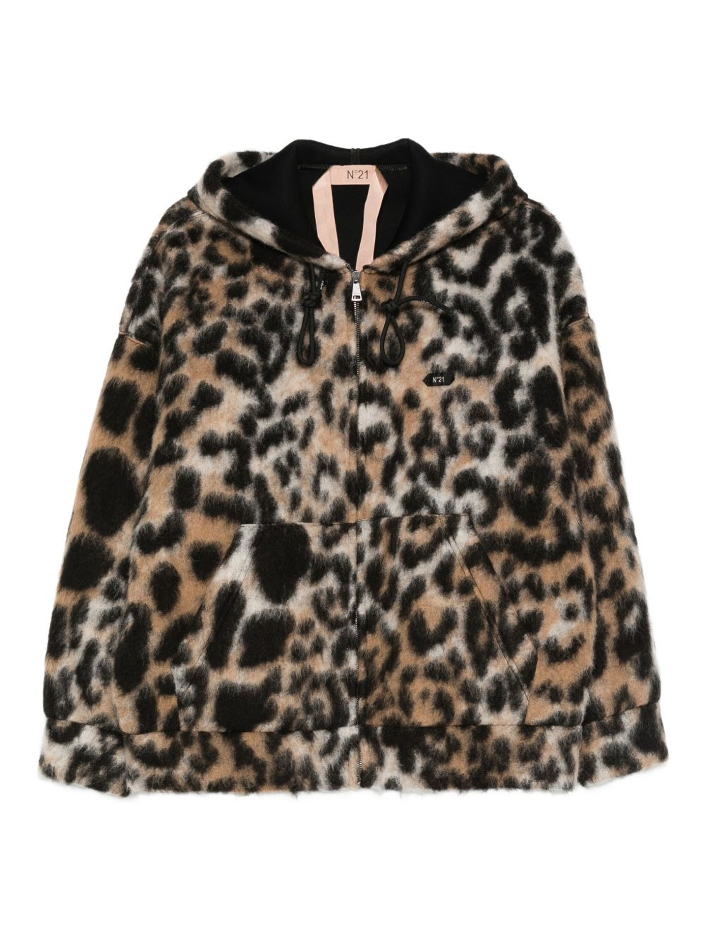leopard-print hooded coat Highlights - Black and beige - Leopard print - Hooded - Zip fastening - Long sleeves Made in Italy Composition Outer: Mohair 100%, Polyester 45%, Acrylic 30%, Wool 15% Lining: Polyurethane 50%, Viscose 50% Washing instructions Dry Clean Only