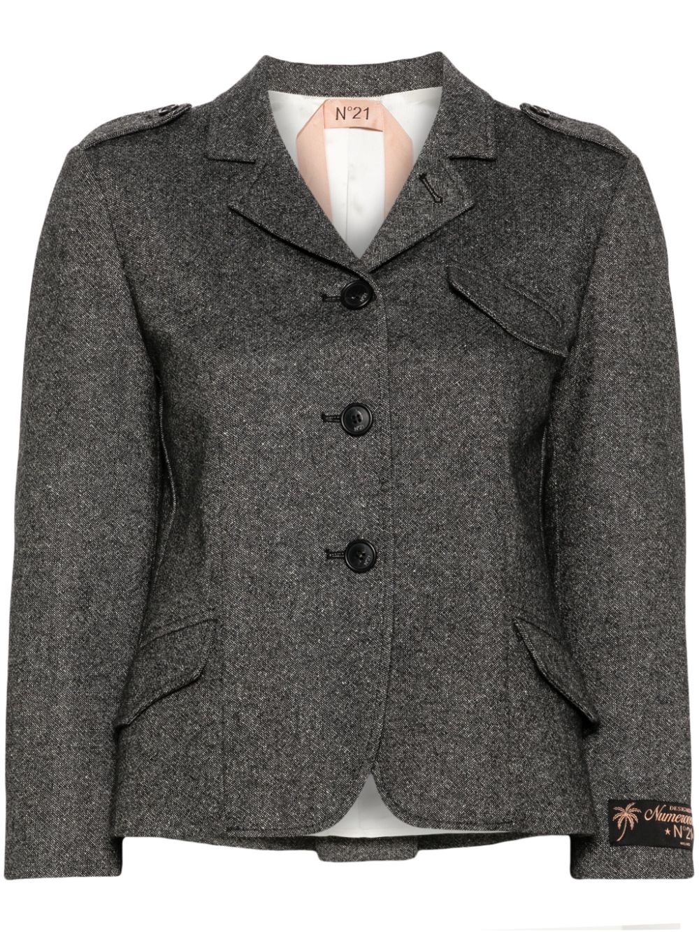 melange-effect jacket Highlights - Black/white - Wool blend - Melange effect - Applique logo - Epaulettes - Notched collar - Front button fastening - Long sleeves - Buttoned cuffs - Chest flap pocket - Two front flap pockets - Central rear vent - Full lining Imported Composition Wool 60%, Polyamide 27%, Silk 9%, other fibers 2%, Elastane 1% SIZE & FIT Model measurements Height 5 ft 9 in(1.75 m) Bust/Chest 31.88 in(81 cm) Hips 34.64 in(88 cm) Waist 24.01 in(61 cm) Washing instructions Read Manufacturer Guidelines