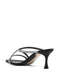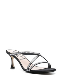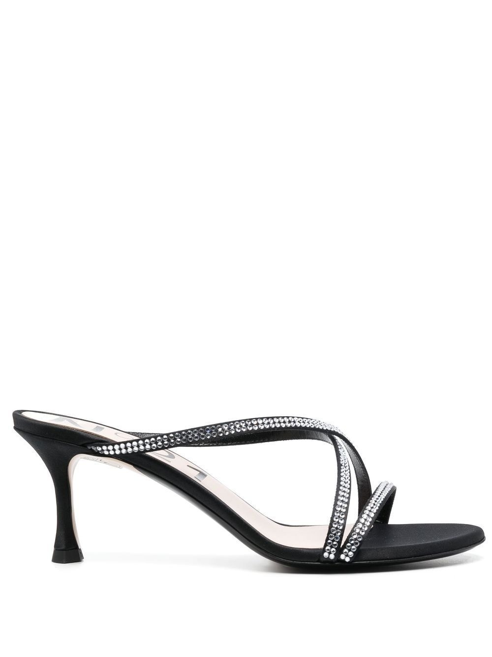 60mm crystal-embellished crossover-strap mules Nº21's mules comprise slim straps encrusted with sparkling crystals that lend a touch of sparkle. This black pair rests on a subtly fluted 60mm heel. Highlights - Black - Lambskin/cotton blend - Crystal embellishment - Crossover strap detail - 60mm low heel Made in Italy Composition Cotton 100% SIZE & FIT Measurement HEEL 2.36 in(6 cm)