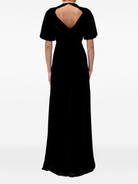 open-back maxi dress Highlights - Black - Velvet texture - Open back - Short sleeves - Floor length Made in Italy Composition Viscose 82%, Silk 18% Washing instructions Read Manufacturer Guidelines