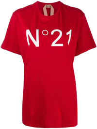 oversized logo print T-shirt Wear your heart on your sleeve and your favourite label on your chest. This oversized logo print T-shirt from Nº21 lets the world know you've got great taste. And an even greater tee collection. Highlights - Red/white - Cotton - Logo print at the chest - Short sleeves - Round neck - Straight hem - Oversized Imported Composition Cotton 100% SIZE & FIT FittingInformation This piece fits true to size. We recommend you get your regular size Cut for a loose fit Made with a mid-weight fabric Washing instructions Hand Wash