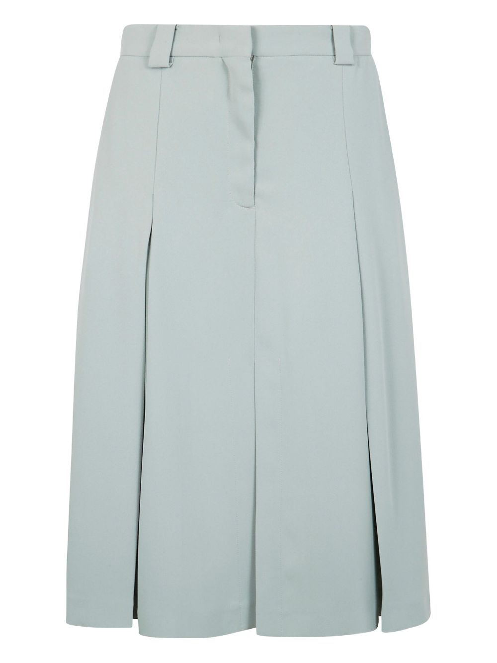 pleated midi skirt Highlights - Mint green - Pleated detailing - Centre-front slit - High waist - Concealed zip fastening - Straight hem Imported Composition Polyester 100% Washing instructions Read Manufacturer Guidelines