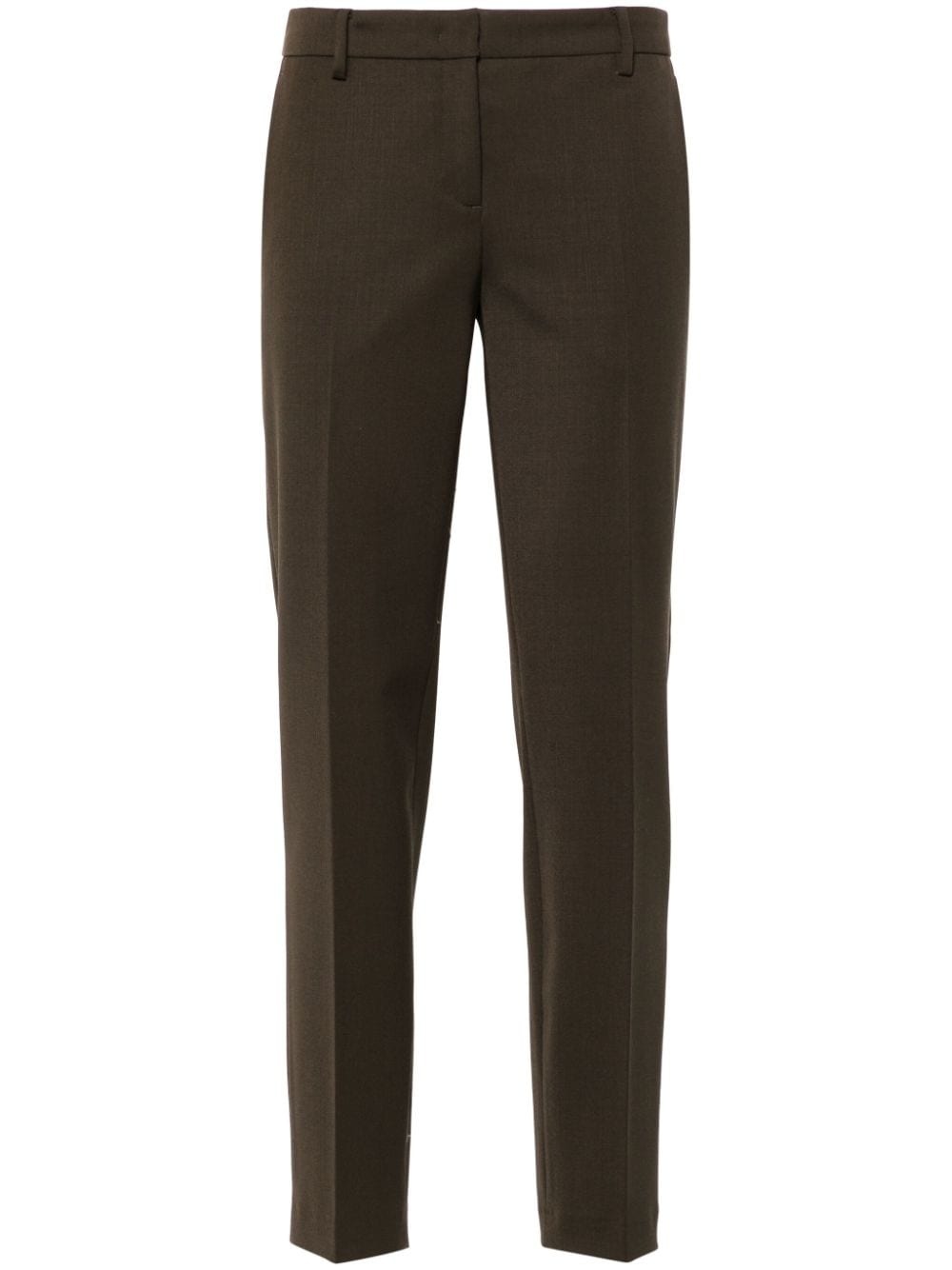 pressed-crease trousers Highlights - Khaki - Twill weave - Belt loops - Two diagonal pockets to the sides - Pressed crease - Two rear button-fastening jetted pockets - Concealed front button, hook and zip fastening Imported Composition Polyester 53%, Wool 43%, Elastane 4% SIZE & FIT Model measurements Height 5 ft 9 in(1.75 m) Bust/Chest 32.67 in(83 cm) Hips 36.22 in(92 cm) Waist 24.8 in(63 cm) FittingInformation Designed for a slim fit, these trousers offer a close fit at the waist, allowing a comfortable close fit and some movement over the leg Made from a midweight stretch fabric, this piece offers elasticity and flexibility when worn This piece fits true to size – take your usual size