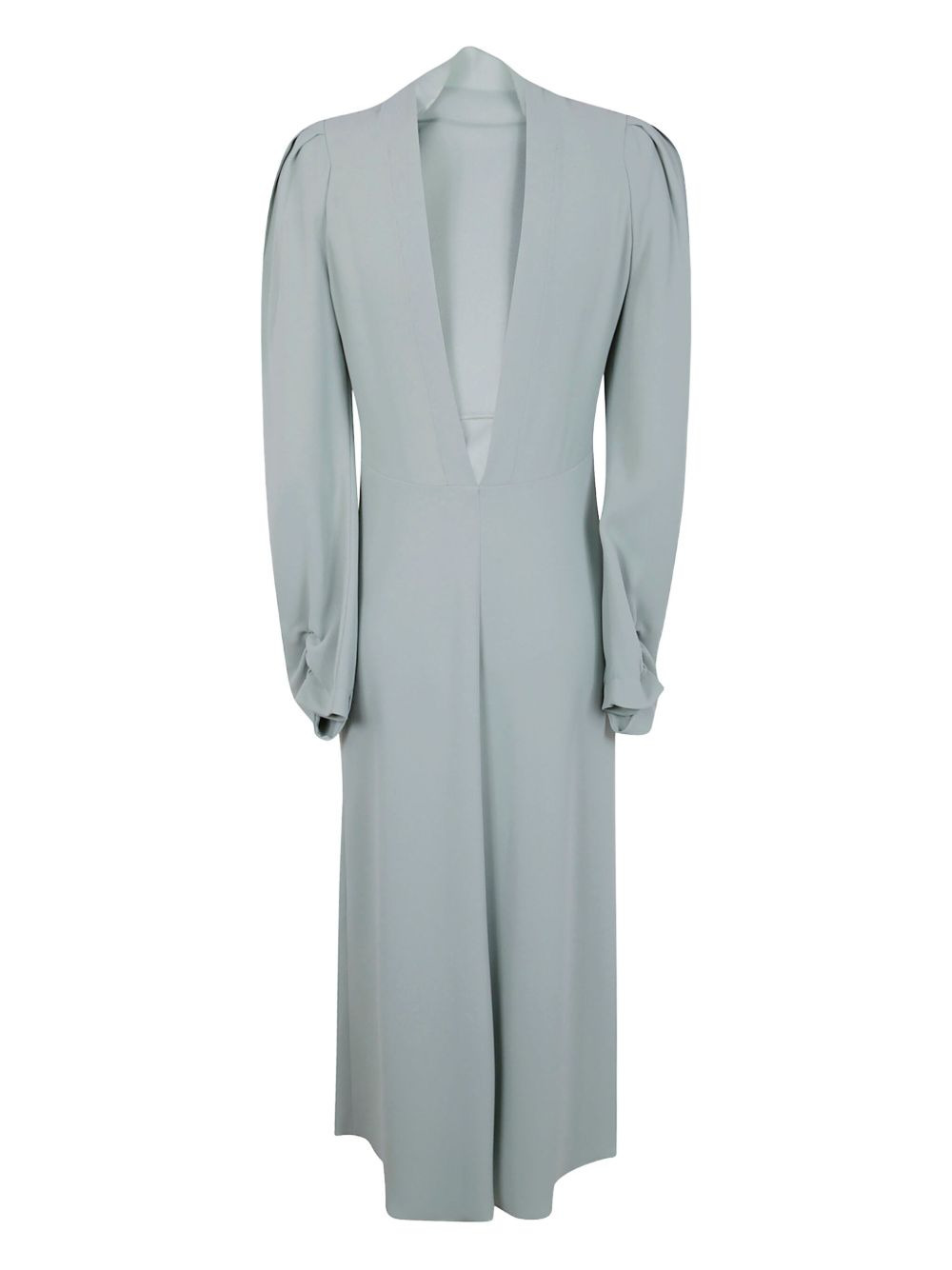 puff-sleeve dress Highlights - Mint blue - V-back - Puff sleeves - Long sleeves - A-line skirt Imported Composition Polyester 100% Washing instructions Read Manufacturer Guidelines