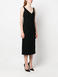 ruched-strap midi dress Highlights - Black - Ruched detailing - Exposed rear zip fastening - V-neck - Sleeveless - Mid-length Made in Italy Composition Outer: Acetate 50%, Viscose 50% Lining: Cupro 100% SIZE & FIT Model measurements Height 5 ft 8 in(1.73 m) Bust/Chest 33.07 in(84 cm) Hips 35.03 in(89 cm) Waist 24.8 in(63 cm) FittingInformation Designed for a slim fit that sits just away from the body offering a close yet comfortable fit The dart stitching adds structure and a closer fit in the torso of this piece Made from a midweight non-stretch fabric This piece fits true to size – take your usual size Washing instructions Dry Clean Only