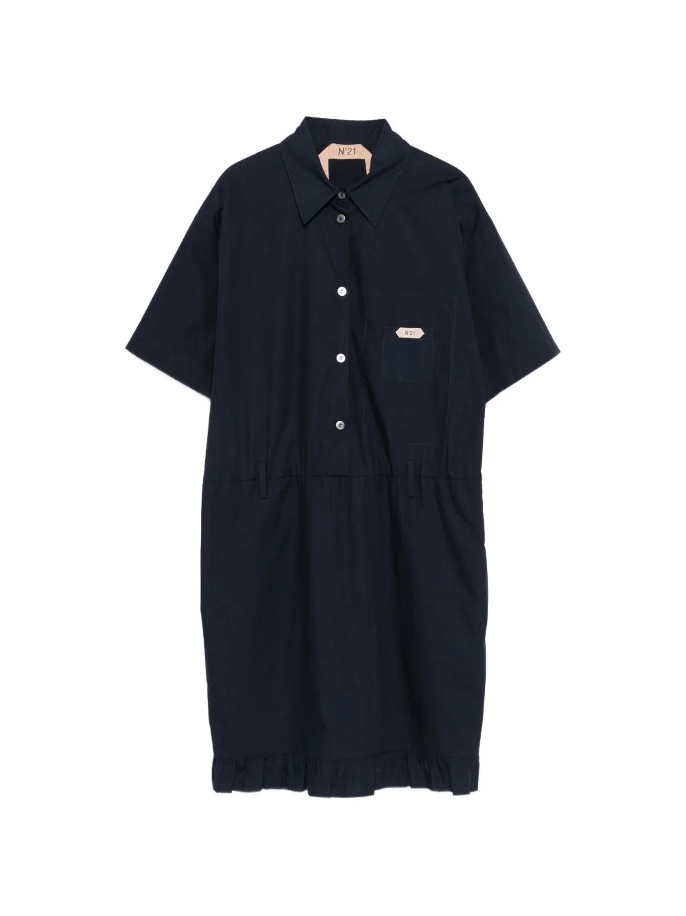 ruffle-trim short-sleeve dress Highlights - Blue - Point collar - Short sleeves - Chest pocket - Button fastening - Ruffle trim Made in Italy Composition Cotton 100% Washing instructions Machine Wash