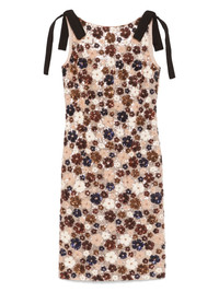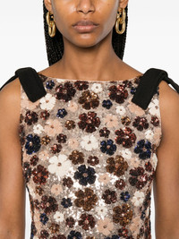 sequinned midi dress Highlights - Light brown - Concealed rear hook and zip fastening - Boat neck - Scoop back - Bow detailing Made in Italy Composition Outer: Viscose 100%, Polyester 100% Lining: Viscose 57%, Polyester 43% SIZE & FIT Model measurements Height 5 ft 11 in(1.8 m) Bust/Chest 31.49 in(80 cm) Hips 35.82 in(91 cm) Waist 24.8 in(63 cm) FittingInformation Designed for a slim fit that sits just away from the body offering a close yet comfortable fit Made from a midweight non-stretch fabric