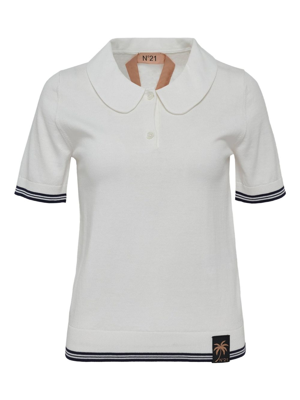 short-sleeve polo top Highlights - White - Short sleeves - Ribbed hem - Ribbed cuffs Imported Composition Cotton 100% Washing instructions Read Manufacturer Guidelines