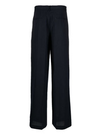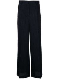 tailored pinstripe-pattern trousers Highlights - Midnight blue - Wool blend - Tailored design - Pinstripe pattern - Mid-rise - Wide leg - Pressed crease - Belt loops - Concealed front fastening - Two side inset pockets - Two rear welt pockets Imported Composition Polyester 52%, Wool 43%, Spandex/Elastane 4%