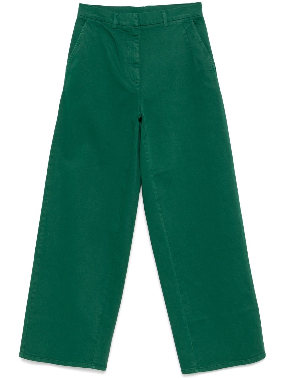 twill-weave trousers Highlights - Forest green - Concealed fly and button fastening - Belt loops - Two diagonal pockets to the sides - Two rear welt pockets Made in Italy Composition Cotton 98%, Spandex/Elastane 2%