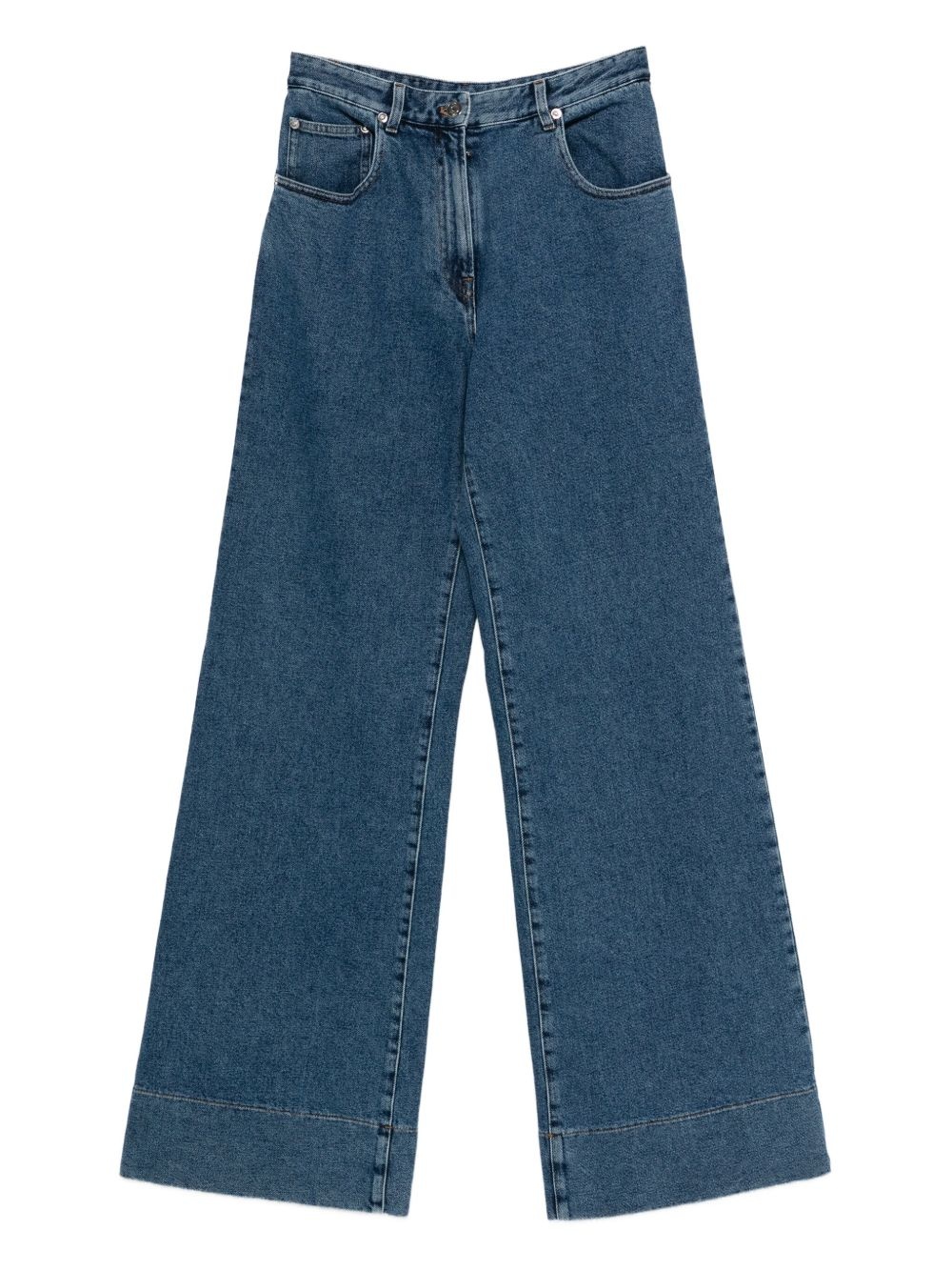 wide-leg trousers Highlights - Blue - Wide leg - High waist - Five pockets - Button fly Made in Italy Composition Cotton 98%, Elastane 2% Washing instructions Machine Wash
