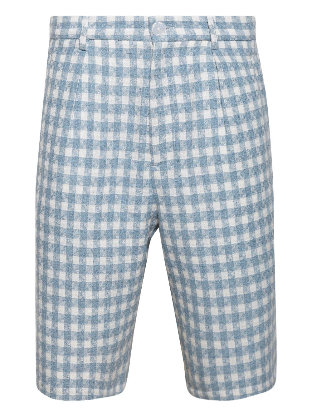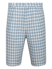 check-patterned shorts Highlights - Blue - Check pattern - Side pockets - Concealed fly and button fastening Imported Composition Outer: Polyester 81%, Wool 10%, Rayon 9% Lining: Polyester 88%, Elastane 12% Washing instructions Read Manufacturer Guidelines