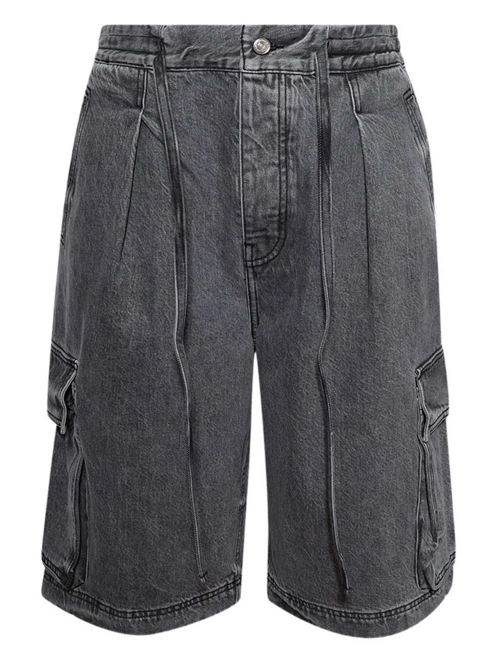 drawstring-fastening cargo shorts Highlights - Grey wash - Drawstring fastening - Cargo pockets - Back pockets - Elasticated waistband Imported Composition Fabric 100% Washing instructions Read Manufacturer Guidelines