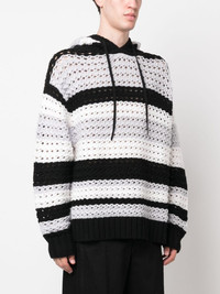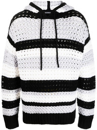 stripe-pattern hooded wool jumper Highlights - Black/white/grey - Wool - Embroidered design - Horizontal stripe pattern - Long sleeves - Drawstring hood - Ribbed cuffs and hem Imported Composition Wool 100% SIZE & FIT Model measurements Height 6 ft 2 in(1.87 m) Bust/Chest 35.82 in(91 cm) Hips 35.43 in(90 cm) Waist 27.95 in(71 cm) FittingInformation Designed to be unstructured, offering a loose fit throughout The adjustable drawstring means that you can adjust this piece’s fit to suit your comfort and preference Made with a midweight knit, this piece offers some stretch This piece fits true to size – take your usual size Washing instructions Dry Clean Only