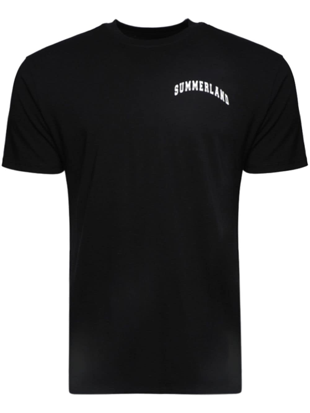 Summerland printed cotton T-shirt Capturing NAHMIAS' streetwear aesthetic, this cotton T-shirt embraces a laid-back energy with its relaxed fit. Presented in classic black, it features contrasting arched prints that spell out 'Summerland'. Highlights - Black/white - Cotton - Jersey knit - Slogan print to the front - Slogan print to the rear - Crew neck - Short sleeves - Straight hem Imported Composition Cotton 100%