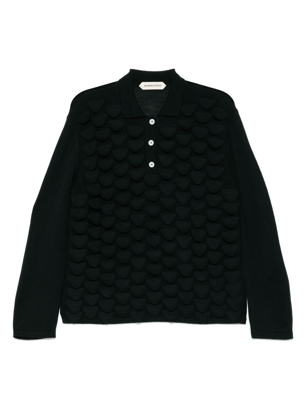 bird feather polo shirt Highlights - Navy blue - Short front button fastening - Straight hem Imported Composition Merino 100% SIZE & FIT Model measurements Height 6 ft 2 in(1.88 m) Bust/Chest 34.25 in(87 cm) Hips 34.64 in(88 cm) Waist 26.77 in(68 cm) FittingInformation Designed for a regular fit, this polo shirt offers a comfortable loose fit throughout the body Made with a midweight knit, this piece offers some stretch