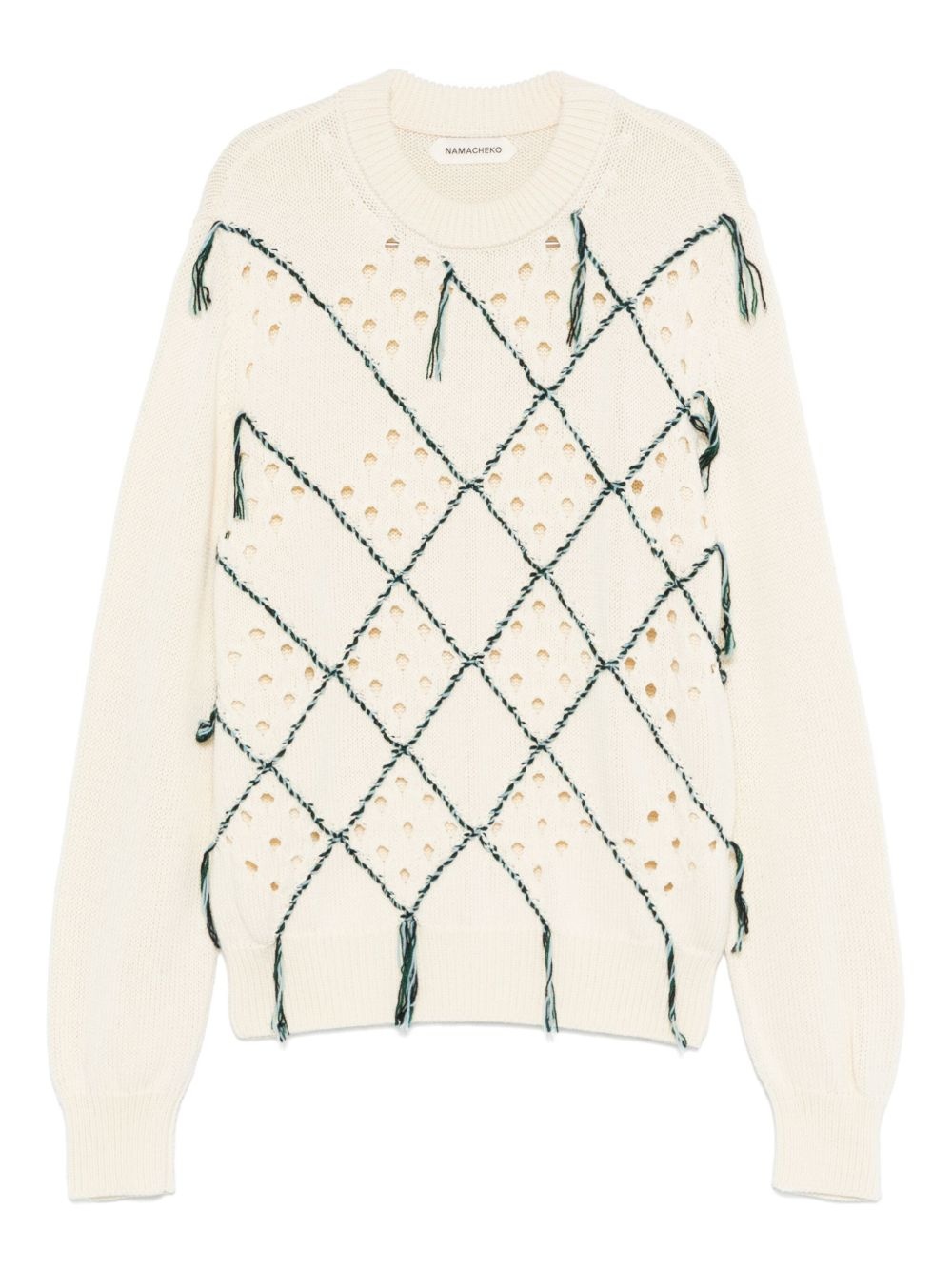 intarsia crew-neck sweater Highlights - Light beige - Ribbed cuffs and hem - Cut-out detailing - Diamond pattern Imported Composition Virgin Wool 100% Washing instructions Hand Wash