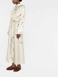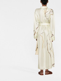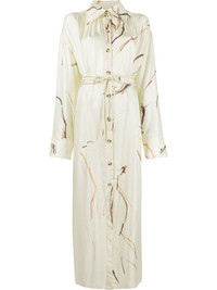 abstract-print silk shirt dress Nanushka gets artistic for SS23, presenting pieces such as this maxi shirt dress. Crafted from fluid silk, this long-sleeved design is elevated by an abstract print and a self-tie belt at the waist, which can be adjusted according to preference. Highlights - Ivory white - Silk - Abstract pattern print - Classic collar - Front button fastening - Belted waist - Drop shoulder - Long sleeves - Buttoned cuffs - Long length - Straight hem Imported Composition Silk 100% SIZE & FIT Model measurements Height 5 ft 10 in(1.77 m) Bust/Chest 31.49 in(80 cm) Hips 33.85 in(86 cm) Waist 22.44 in(57 cm)