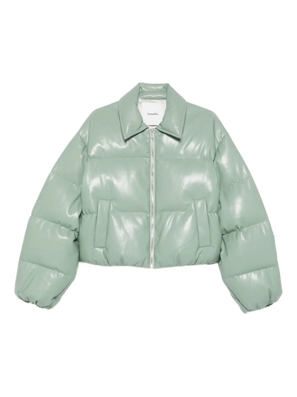 adjustable cropped puffer jacket Highlights - Green - Quilted design - Zip fastening - Collared neckline - Long sleeves - Welt pockets Imported Composition Polyester 100%, Polyurethane 100% SIZE & FIT Model measurements Height 5 ft 11 in(1.8 m) Bust/Chest 32.67 in(83 cm) Hips 36.22 in(92 cm) Waist 24.4 in(62 cm) Washing instructions Dry Clean Only