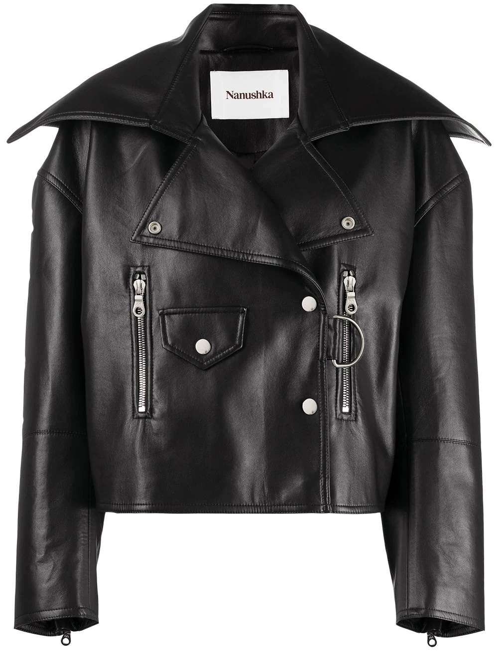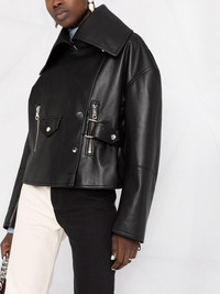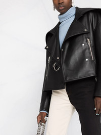 Ado biker jacket Highlights - Black - Vegan leather - Wide notch lapels - Off-centre front button fastening - Front zip fastening pockets - Long sleeves - Cuff zips Imported Composition Other fibres 100% SIZE & FIT Model measurements Height 5 ft 11 in(1.8 m) Bust/Chest 32.67 in(83 cm) Hips 36.22 in(92 cm) Waist 24.4 in(62 cm) Measurement SLEEVE LENGTH 20.86 in(53 cm) LENGTH 22.44 in(57 cm) Washing instructions Specialist Cleaning