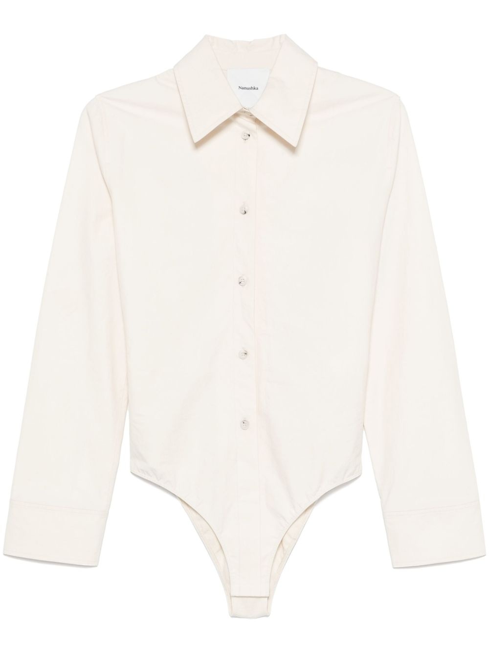 Aliska bodysuit Highlights - Ecru - Front button fastening - Snap-fit fastening - Buttoned cuffs - Rear elasticated waistband - Just a reminder that this piece must be tried on over your own garments. Imported Composition Cotton 100%, Viscose 67%, Polyamide 28%, Elastane 5% SIZE & FIT Model measurements Height 5 ft 10 in(1.77 m) Bust/Chest 34.64 in(88 cm) Hips 35.43 in(90 cm) Waist 24.8 in(63 cm) FittingInformation The partially elasticated waistband offers increased movement and comfort at the waist Made from a midweight non-stretch fabric