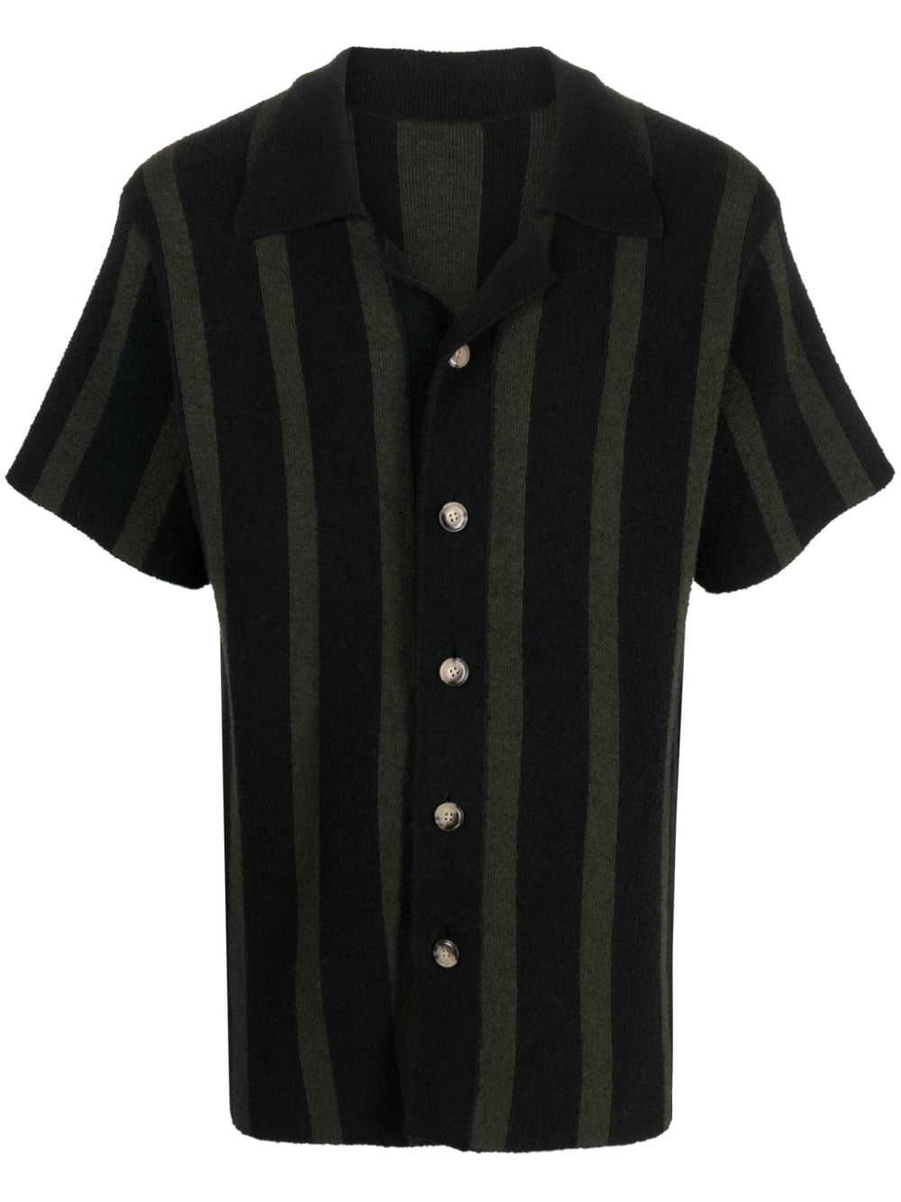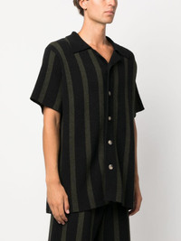 Almar striped terry-cloth shirt Crafted from a blend of organic cotton, this Almar shirt by Nanushka features a terry-cloth effect that lends the garment a soft and cosy texture. The loose silhouette embodies the label's easygoing spirit, while the vertical lines add colour to the design. Highlights - Black/dark green - Organic cotton blend - Terry-cloth effect - Vertical stripe pattern - Camp collar - Front button fastening - Short sleeves - Straight hem Imported Composition Fabric 100% SIZE & FIT Model measurements Height 6 ft 1 in(1.85 m) Bust/Chest 35.43 in(90 cm) Hips 35.82 in(91 cm) Waist 27.55 in(70 cm) FittingInformation Designed to be unstructured, offering a loose fit throughout Made with a midweight knit, this piece offers some stretch Washing instructions Dry Clean Only