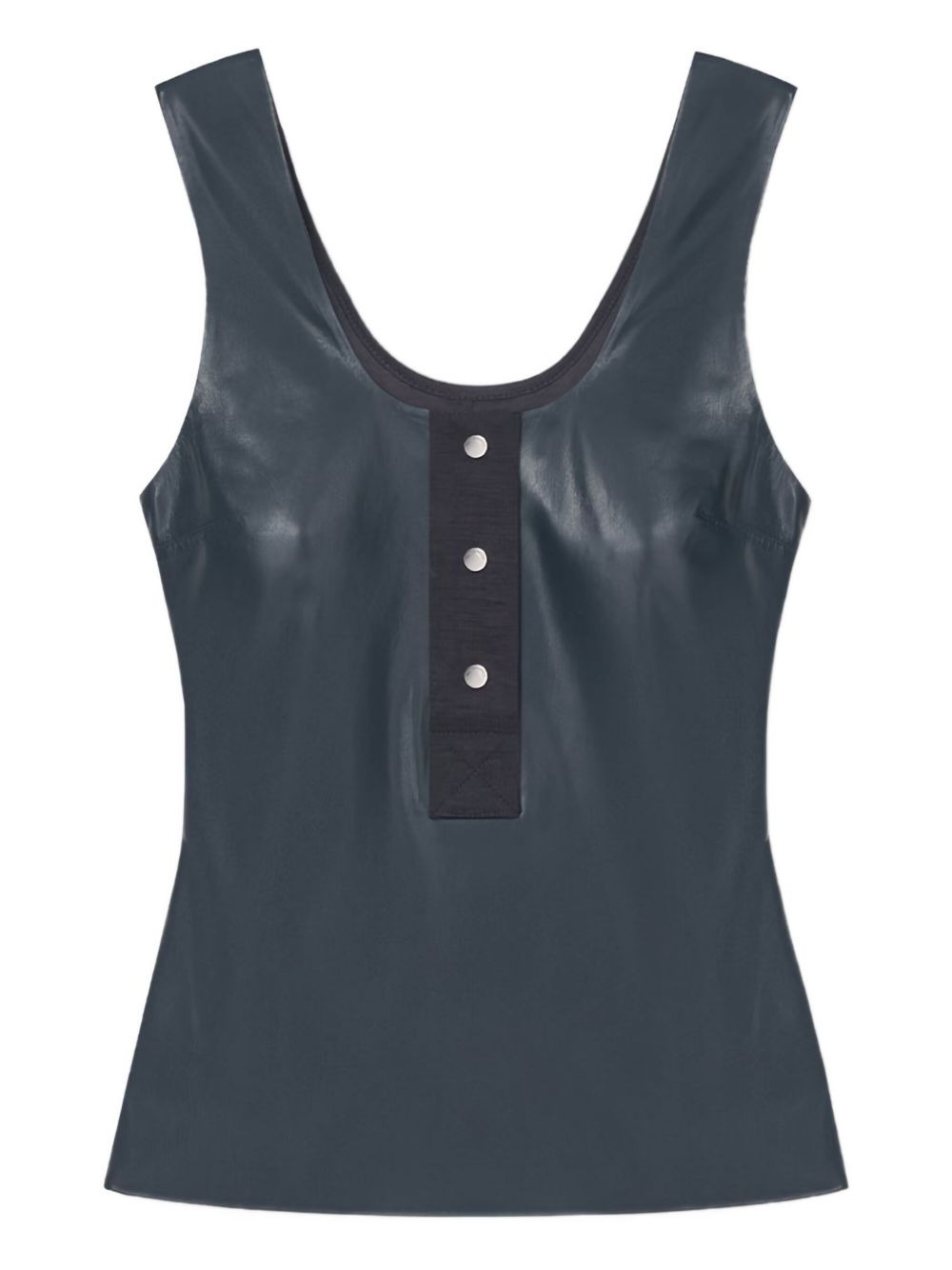 Anesa button-plaquet tank top Highlights - Steel blue - Button detail - Sleeveless - Scoop neck Imported Composition Wool 100%, Recycled Polyester 100%, Polyurethane 100% Washing instructions Specialist Cleaning
