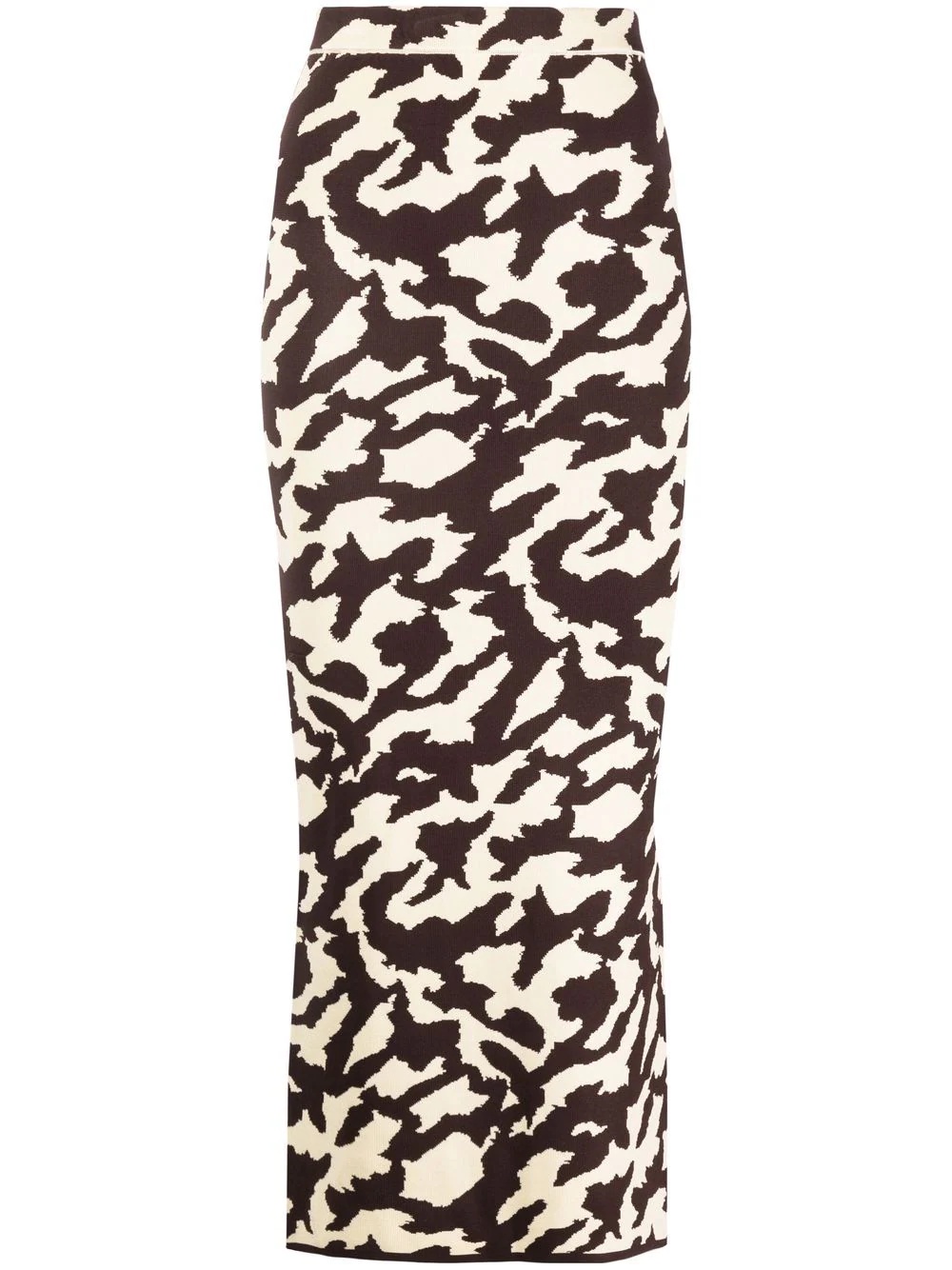 animal print midi tube skirt In a slender, hugging design, this knitted skirt from Nanushka delivers a piece of the countryside to the fashion world. Its cow print is presented in brown and ivory white. Highlights - Ivory white/brown - Virgin wool - Stretch-design - Fine knit - Animal print - High waist - Side slits - Mid-length - Straight hem Imported Composition Recycled Polyester 100%, Virgin Wool 100%, Elastane 100% SIZE & FIT Model measurements Height 5 ft 11 in(1.8 m) Bust/Chest 31.49 in(80 cm) Hips 35.82 in(91 cm) Waist 24.8 in(63 cm) Washing instructions Dry Clean Only