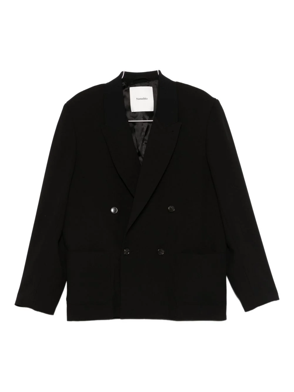 Anselm double-breasted blazer Highlights - Black - Double breasted - Peak lapels - Front patch pockets - Button fastening - Long sleeves Imported Composition Outer: Lyocell 79%, Viscose 52%, Polyamide 46%, Virgin Wool 21%, Elastane 2% Lining: Viscose 100% SIZE & FIT Model measurements Height 6 ft 1 in(1.85 m) Bust/Chest 38.58 in(98 cm) Hips 37 in(94 cm) Waist 30.31 in(77 cm) Washing instructions Dry Clean Only