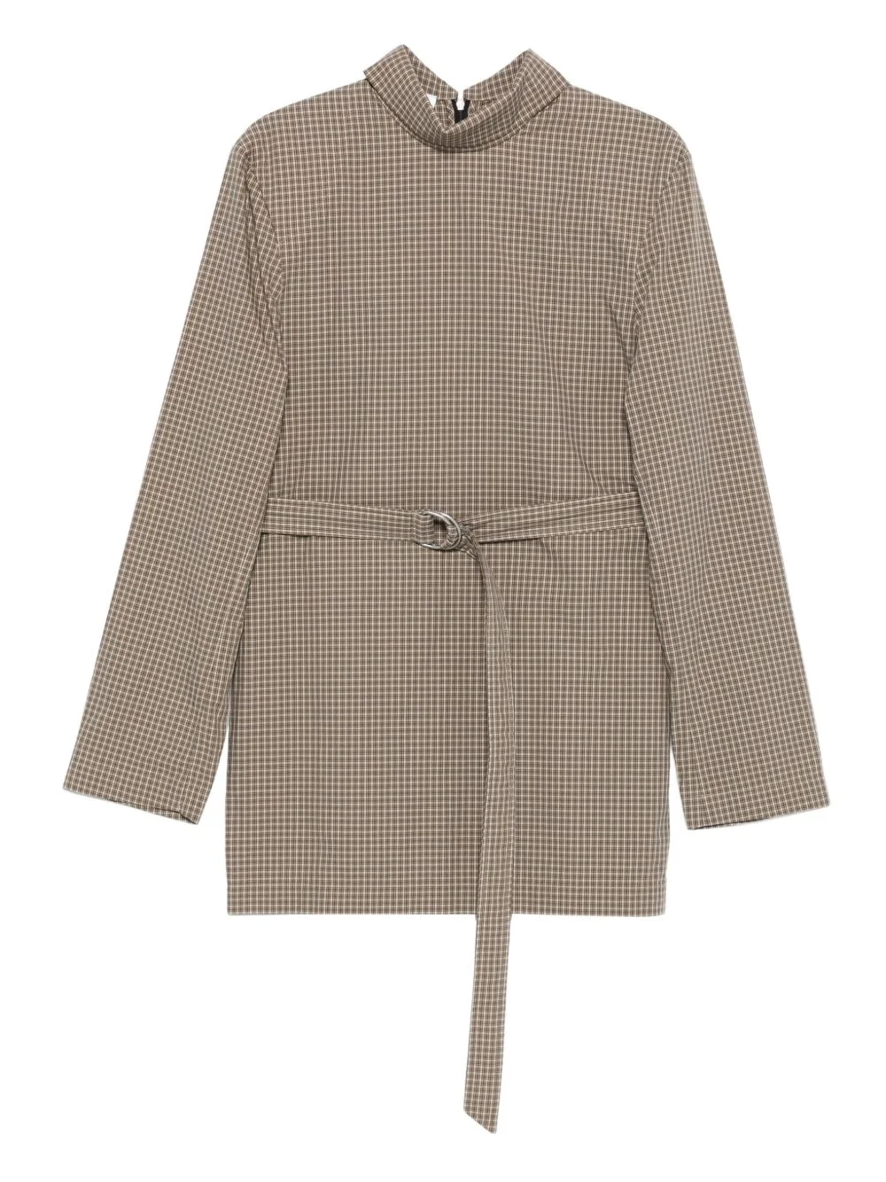 belted check-pattern mini dress Highlights - Brown and cream - Checked pattern - Turtleneck - Long sleeves - Self-tie belt Imported Composition Cotton 100% SIZE & FIT Model measurements Height 5 ft 11 in(1.8 m) Bust/Chest 32.67 in(83 cm) Hips 36.22 in(92 cm) Waist 24.4 in(62 cm) Washing instructions Read Manufacturer Guidelines