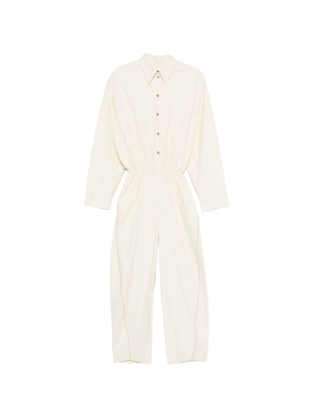 binding detail jumpsuit Highlights - Cream - Button fastening - Binding detail - Point collar - Long sleeves - Elasticated waist Imported Composition Lining: Cotton 70%, Polyamide 30% Outer: Cotton 100%, Triacetate 86%, Polyester 14% Washing instructions Read Manufacturer Guidelines