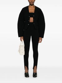 bralette crop top Highlights - Black - Side button fastening - Scoop neck - Scoop back - Sleeveless Imported Composition Viscose 98%, Elastane 2% SIZE & FIT Model measurements Height 5 ft 10 in(1.77 m) Bust/Chest 34.64 in(88 cm) Hips 35.43 in(90 cm) Waist 24.8 in(63 cm) FittingInformation Designed for a close fit throughout Cropped in length Made from a midweight stretch fabric, this piece offers elasticity and flexibility when worn