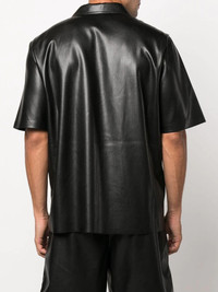 Camp faux-leather shirt Following Nanushka's sustainable modern luxury style, this short-sleeve shirt is crafted from faux leather. Its design features a sleek black hue, enhanced with a chest patch pocket. Highlights - Black - Faux leather - Classic collar - Front button fastening - Button-fastening chest pocket - Straight hem Imported Composition Polyurethane 60%, Polyester 40% SIZE & FIT Model measurements Height 6 ft 1 in(1.85 m) Bust/Chest 37.79 in(96 cm) Hips 37.4 in(95 cm) Waist 30.7 in(78 cm) Washing instructions Dry Clean Only