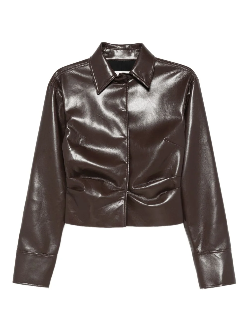 cinched-waist splayed-hem shirt Highlights - Brown - Cinched waist - Splayed hem - Collared neckline - Long sleeves Imported Composition Polyurethane 100%, Polyester 100% SIZE & FIT Model measurements Height 5 ft 10 in(1.78 m) Bust/Chest 31.49 in(80 cm) Hips 37 in(94 cm) Waist 23.62 in(60 cm) Washing instructions Dry Clean Only