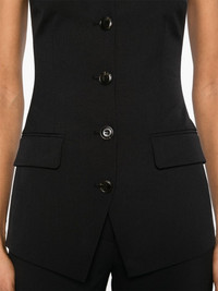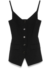 Cinda top Highlights - Black - Front button fastening - Adjustable shoulder straps - Two front flap pockets - Rear slit Imported Composition Polyester 55%, Virgin Wool 45% SIZE & FIT Model measurements Height 5 ft 11 in(1.8 m) Bust/Chest 32.67 in(83 cm) Hips 35.82 in(91 cm) Waist 25.98 in(66 cm) FittingInformation Designed for a close fit throughout The elasticated shoulders offer movement and a comfortable fit Made from a midweight non-stretch fabric Washing instructions Dry Clean Only