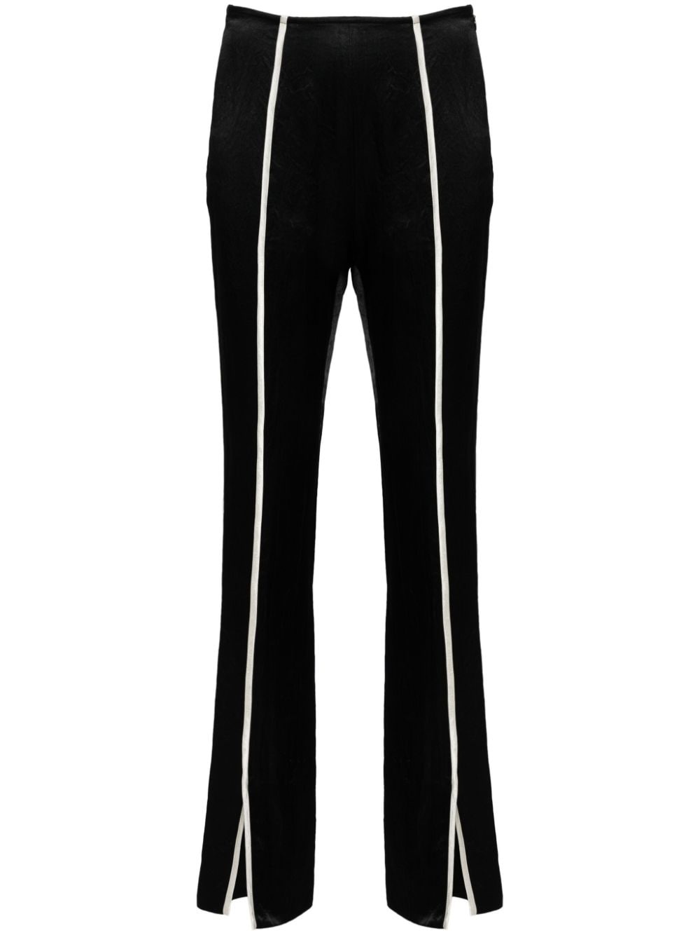 contrasting-trim slim trousers Highlights - Black/ecru - Satin weave - Crinkled finish - Contrasting trim - Slim cut - Concealed side zip fastening - Front slit Imported Composition Acetate 100% SIZE & FIT Model measurements Height 5 ft 11 in(1.8 m) Bust/Chest 32.67 in(83 cm) Hips 35.82 in(91 cm) Waist 25.98 in(66 cm) FittingInformation Designed for a slim fit, these trousers offer a close fit at the waist, allowing a comfortable close fit and some movement over the leg Made from a lightweight non-stretch fabric