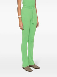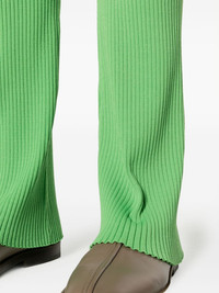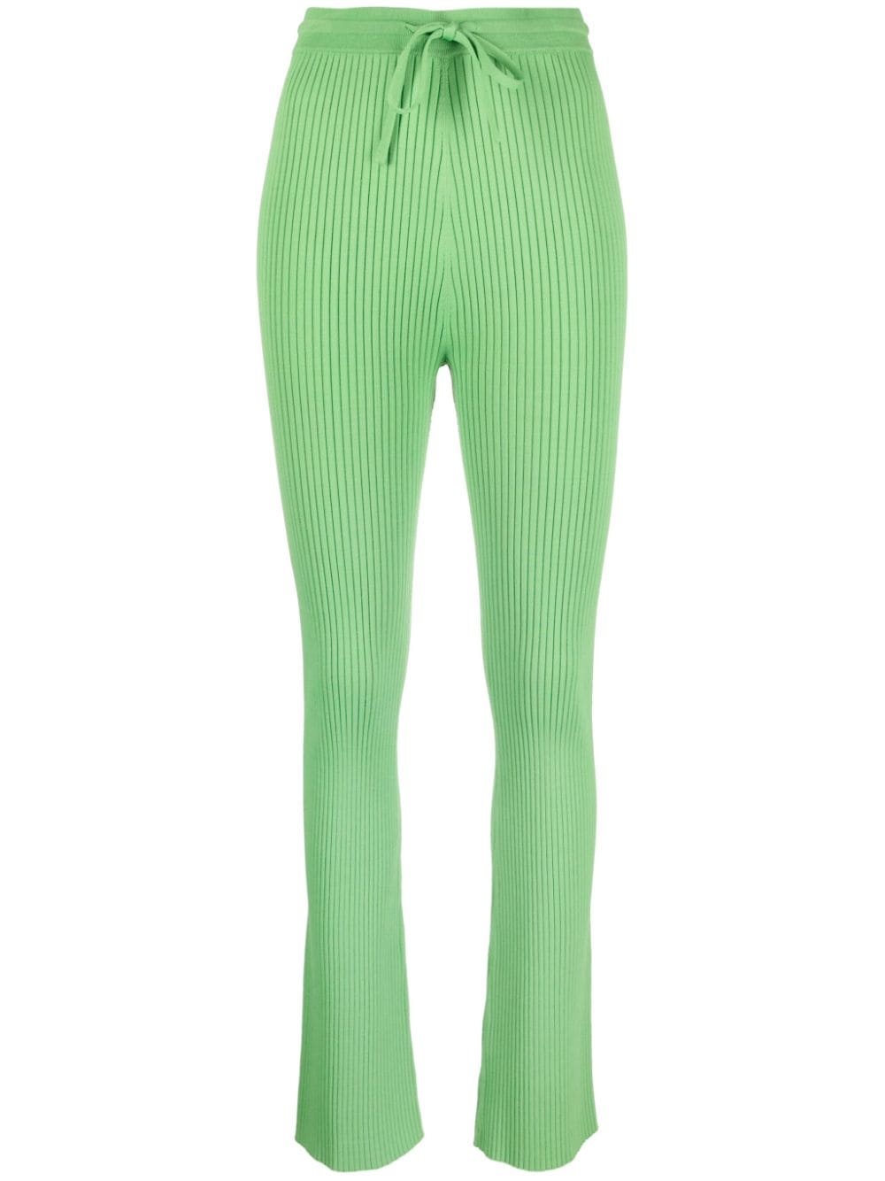 Cornelie ribbed-knit flared trousers Highlights - Lime green - Recycled viscose blend - Ribbed knit - High-waisted - Elasticated drawstring waistband - Flared leg - Scallop hem - Unlined Imported Composition Recycled Viscose 63%, Recycled Nylon 37% SIZE & FIT Model measurements Height 5 ft 11 in(1.8 m) Bust/Chest 30.7 in(78 cm) Hips 35.03 in(89 cm) Waist 24.4 in(62 cm) FittingInformation Designed with a flared hem, these trousers allow for a close fit at the waist with a slim fit over the leg and widening towards the hem Adjust this piece’s waistband to your preference using the drawstring Made with a midweight knit, this piece offers some stretch This piece fits true to size – take your usual size