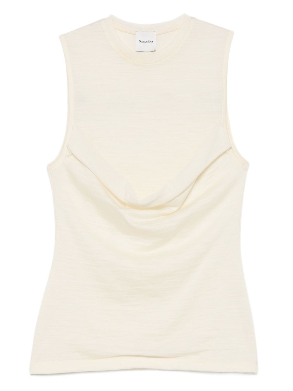 cowl-neck sleeveless top Highlights - Beige - Cowl neck - Sleeveless - Straight hem Imported Composition Fabric 100% SIZE & FIT Model measurements Height 5 ft 10 in(1.77 m) Bust/Chest 33.07 in(84 cm) Hips 37 in(94 cm) Waist 24.8 in(63 cm) Washing instructions Dry Clean Only