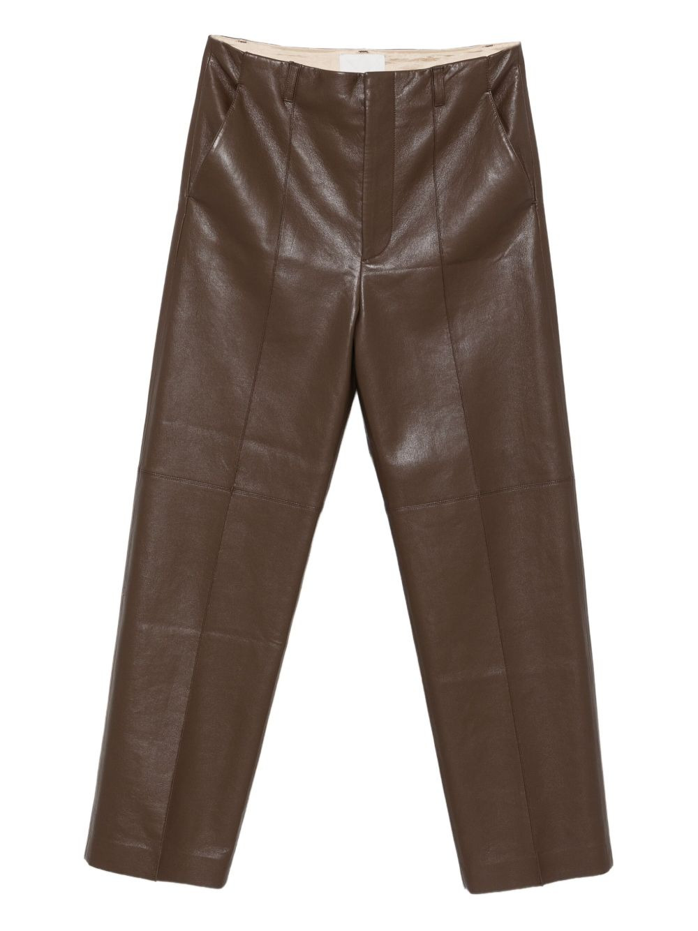 crease-seam trousers Highlights - Brown - Straight leg - Crease seams - Two rear jetted pockets - Concealed front fastening Imported Composition Outer: Polyester 100%, Polyurethane 100% Lining: Polyester 80%, Nylon 20% SIZE & FIT Model measurements Height 6 ft 2 in(1.87 m) Bust/Chest 37.79 in(96 cm) Hips 37.79 in(96 cm) Waist 30.31 in(77 cm) FittingInformation Made from a midweight non-stretch fabric Washing instructions Specialist Cleaning