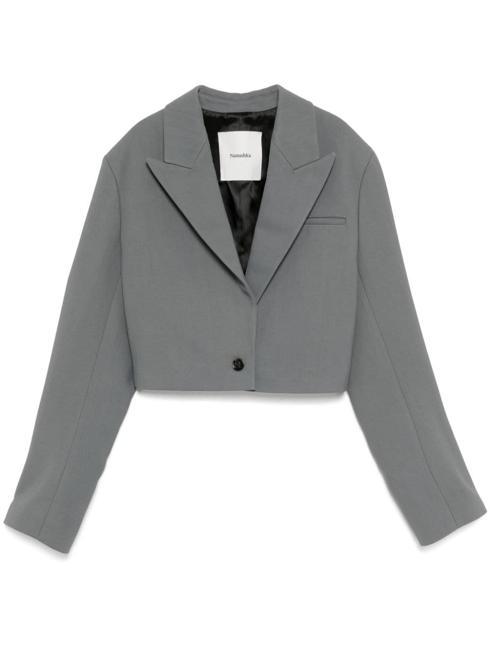cropped boxy fit blazer Highlights - Steel blue - Front button fastening - Notched lapels - Front welt pocket - Long sleeves - Buttoned cuffs - Straight hem - Full lining - Cropped Imported Composition Outer: Viscose 96%, Spandex/Elastane 4% Lining: Viscose 100% SIZE & FIT Model measurements Height 5 ft 10 in(1.79 m) Bust/Chest 31.88 in(81 cm) Hips 36.22 in(92 cm) Waist 24.4 in(62 cm) FittingInformation Designed for a boxy fit, intended for a loose fit throughout Cropped in length Made from a midweight stretch fabric, this piece offers elasticity and flexibility when worn