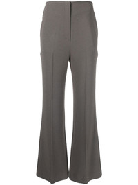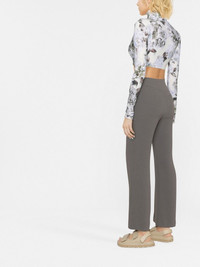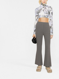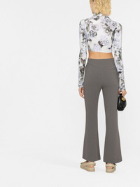 cropped kick flare trousers Presenting Nanushka's take on a classic silhouette, these trousers are sustainably crafted from a blend of recycled materials, falling to a kick flare cropped length. The pressed crease adds elegance and versatility to the grey pair. Highlights - Dark grey - Recycled polyester blend - Mid-rise - Concealed front fastening - Pressed crease - Slim cut - Flared hem - Cropped leg Imported Composition Acetate 50%, Recycled Polyester 50% SIZE & FIT Model measurements Height 5 ft 10 in(1.79 m) Bust/Chest 31.49 in(80 cm) Hips 35.03 in(89 cm) Waist 23.62 in(60 cm) Washing instructions Dry Clean Only